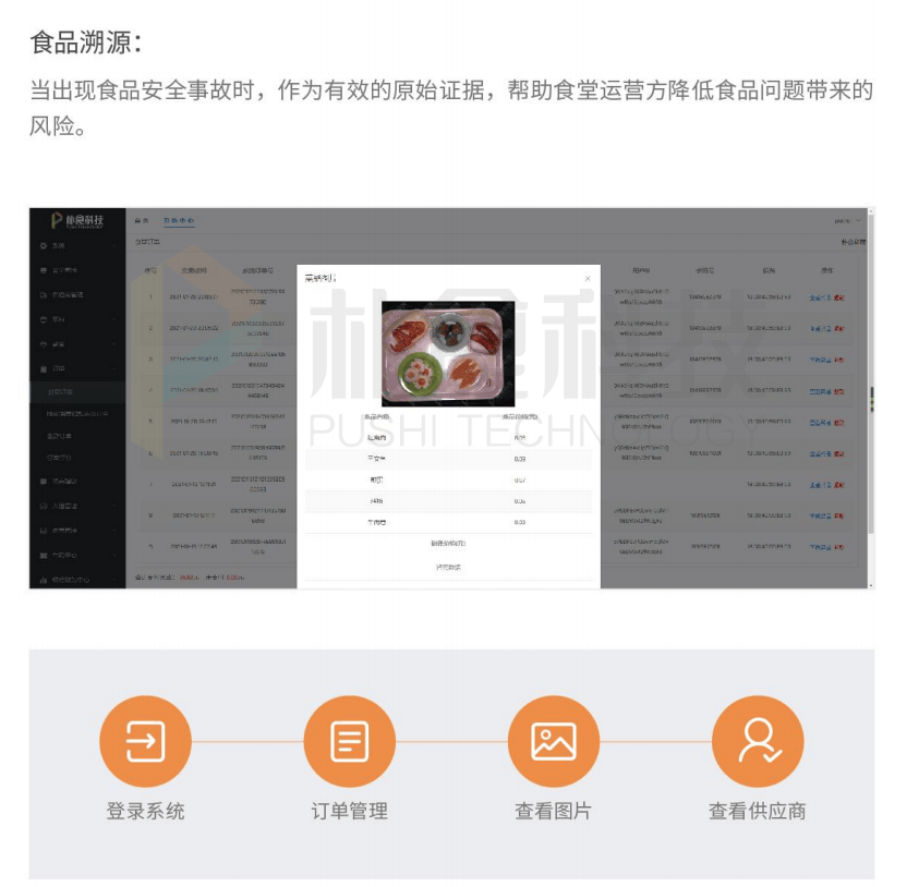朴食科技食物平安办理平台,提示商户及时处置;让每一份食物都经得起平安查验。临近保质期的食物会触发预警,发觉问题时可一键推送协查消息,